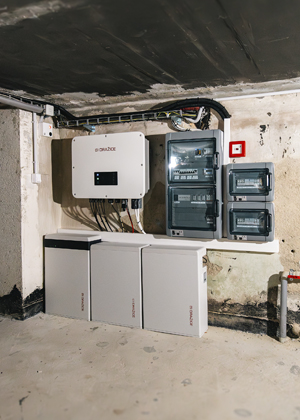 Srdcem celého systému je hybridní střídač Dražice o výkonu 30 kW, který umožňuje efektivní využití solární energie i v kombinaci s bateriovým úložištěm. To zajišťuje Dražice Trinity B58 s celkovou kapacitou 17,4 kWh, dostatečnou pro uložení přebytků energie a jejich využití v době, kdy slunce nesvítí.