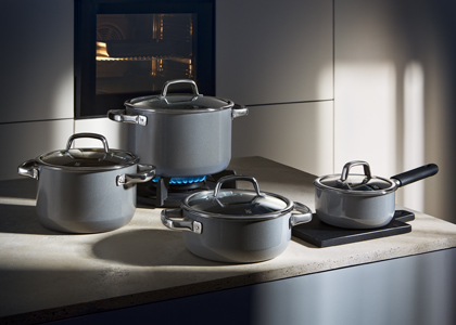 Sada nádobí Ingenio s odnímatelnou rukojetí je jedinečná díky prostorově úspornému stohovatelnému designu. Kromě toho, že s plnohodnotnou sadou nádobí opatřenou nepřilnavým povrchem ušetříte v kuchyni místo, ušetříte si i práci – na plotně můžete začít přípravu jídla, kterou můžete plynule propojit s troubou, stačí odejmout rukojeť a v troubě zapečete cokoli, co bude třeba.