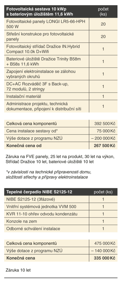 Zuzana (54 let) a Jan (57 let) žijí v malém domku na předměstí a vzhledem k tomu, že dům vytápějí plynovým kotlem, který rovněž ohřívá vodu, rádi by snížili náklady na plyn. Nedávno si pořídili menší auto na elektrický pohon a případný přebytek elektřiny by chtěli využít pro napájení nabíječky elektromobilu.
