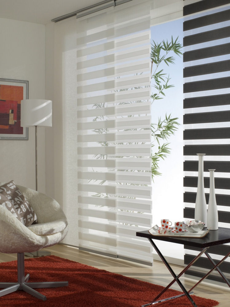 Vyznavači orientálního nebo koloniálního stylu ocení efektní usměrňování slunečního záření pomocí japonské stěny. Tyto posuvné látkové panely nabízí pestrou škálu možností kombinování barev i materiálů a variabilitu posunování. Výborně se hodí pro stínění francouzských oken a balkonových či terasových dveří.