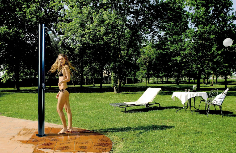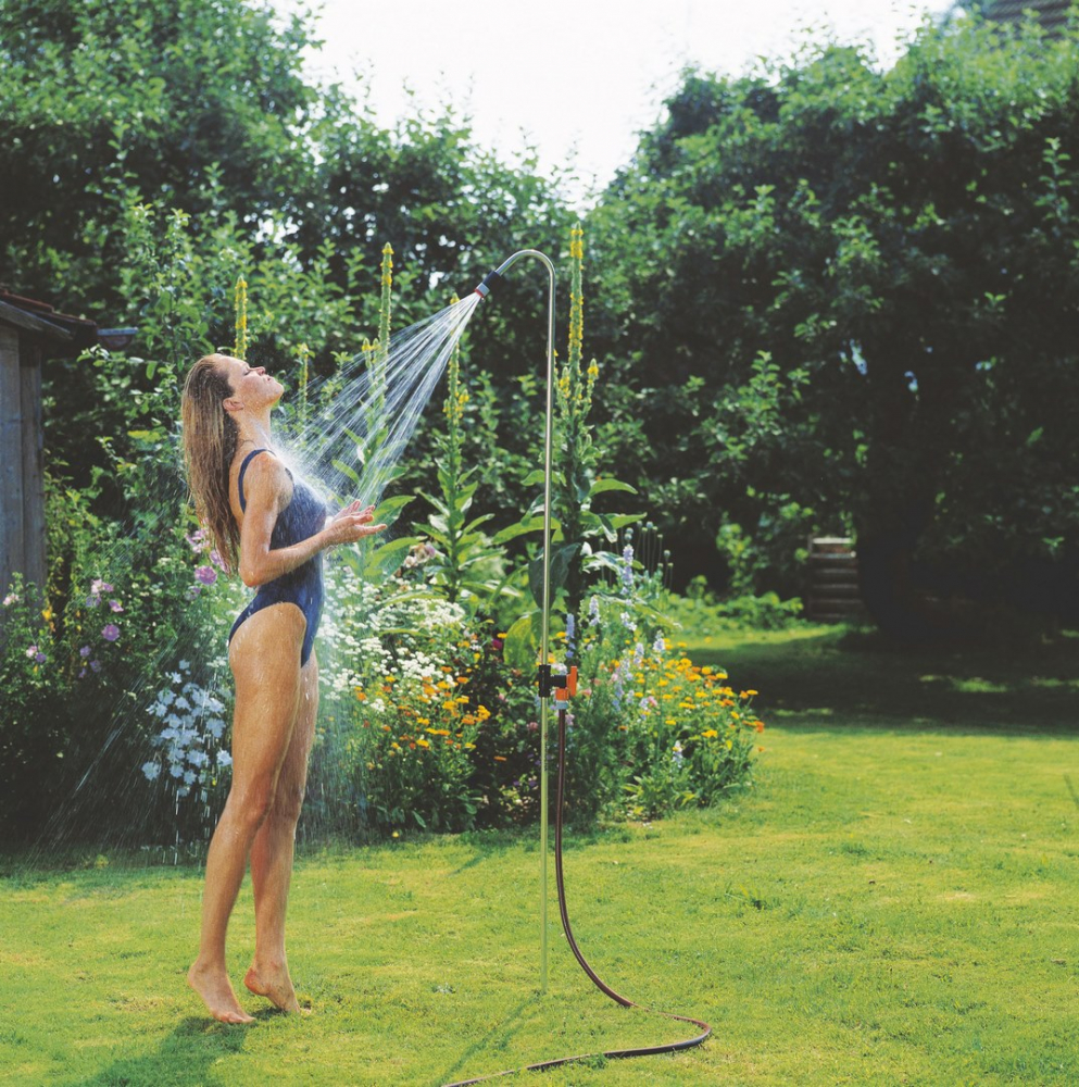 Zahradní sprchu lze instalovat prakticky kdekoliv, je potřeba pouze připojení na vodovodní řád. Vybírat je možné z několika druhů a designů. „Vedle klasických zahradních sprch je velmi populárním druhem sprcha solární. Ta může být buď pevně připojená, nebo přenosná,“ upřesňuje David Benda, odborník z oddělení zahradní techniky v projektových marketech Hornbach, a dodává: „Manipulace je velmi jednoduchá. Solární sprchu je potřeba pouze umístit na dostatečně slunné místo, aby se voda v zásobníku co nejdéle ohřívala.“ Tělo solární sprchy se vyrábí z plastu nebo z hliníku a funguje právě jako zásobník vody. Tato část sprchy funguje zároveň jako solární kolektor. „V letních dnech se stává, že teplota vody v zásobníku vystoupá až na 60 stupňů Celsia. Z toho důvodu je součástí solárních sprch také mísící baterie, která vám umožní zvolit si teplotu vody přesně takovou, jakou si přejete,“ vysvětluje David Benda. Údržba solární sprchy není náročná, je potřeba pravidelně měnit vodu a čas od času zkontrolovat, zda se v trubkách neusazuje vodní kámen.