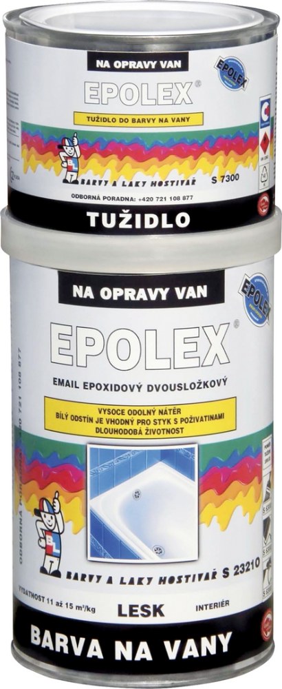 TIP: Barvou na vany Epolex lze snadno nahradit materiál, který byl na vanu nanášen původně. Tvrdost je přibližně stejná jako tvrdost akrylátových van. Balení obsahuje dvě složky, které se skládají z vlastní epoxidové nátěrové hmoty a iniciátoru, který aktivuje tvrzení.