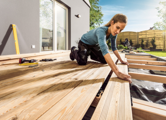 Dřevo je mimořádně pěkné na pohled a příjemné na došlap. Má relativně dlouhou životnost a možnost obnovy. „Aby dřevěná terasa dlouho vydržela, vyžaduje pravidelnou údržbu a ošetřování speciálními nátěry proti škůdcům, hnilobě a vlhkosti. Dřevěná prkna z méně odolných druhů stromů, jako smrek a borovice, se po čase mohou pod vlivem počasí začít kroutit,“ dodává odborník z Hornbachu.