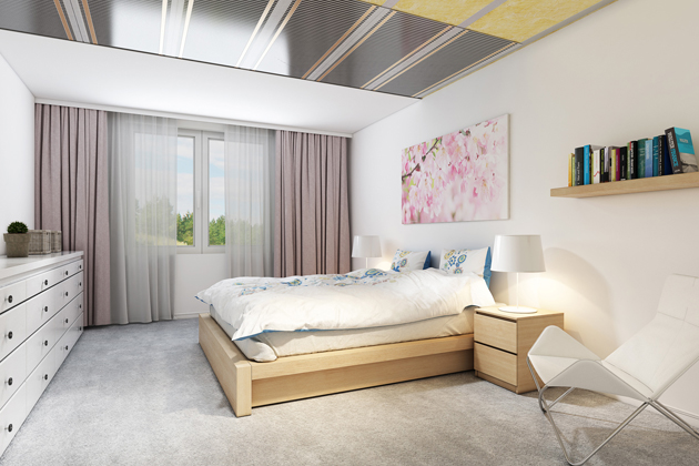 Ať už zvolíte rohože, fólie nebo panely, vždy dostanete vytápění, které vám poskytne rovnoměrné rozložení teploty v místnosti. Navíc to je sálavé teplo, které nevíří vzduch. A nevěřte, že nejlepší je podlahové topení – měření v UCEEB při ČVUT Praha ukázala, že dokonce ještě rovnoměrnější rozložení teploty v místnosti a tím pocitově nejvyšší komfort nabízí také sálavé stropní vytápění. V případě, že máte sádrokartonové stropy, volte pro vytápění stropní topné fólie Ecofilm C, velmi účinné a ideální pro rekonstrukce jsou i stropní sálavé panely Ecosun.