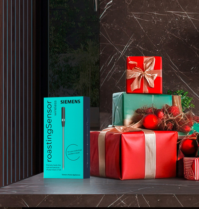 Tip na praktický dárek: bezdrátovou teplotní sondu lze použít při pečení na varné desce, v troubě nebo i grilu. Teplotu nastavíte jednoduše v aplikaci Home Connect na mobilu.