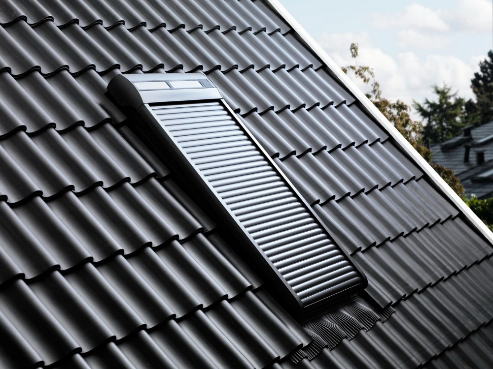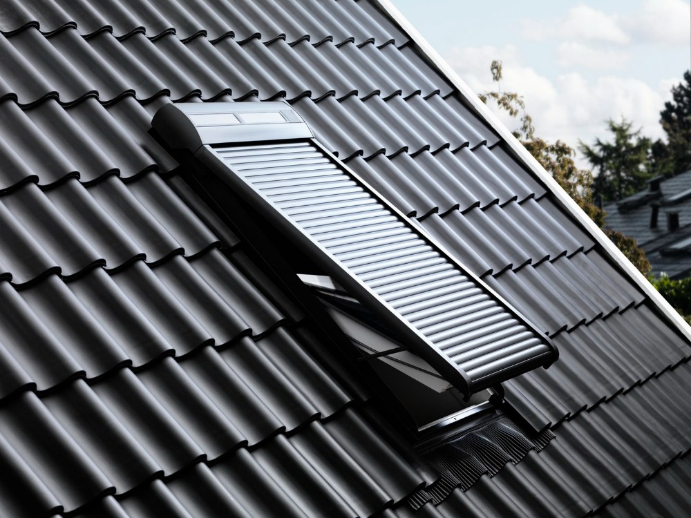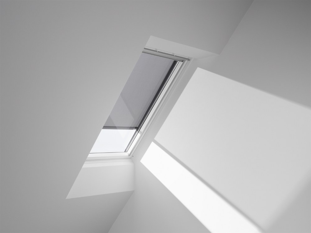 Loňská novinka lehká venkovní roleta na solární pohon VELUX SSS v sobě spojuje schopnost udržet v interiéru chladnější klima i účinně ho zatemnit. Je vyrobena z pevné polyesterové tkaniny potažené PVC a vyztužené hliníkovými lamelami. Tkanina nepropouští světlo, je odolná vůči UV záření a nepodléhá degradaci materiálu.