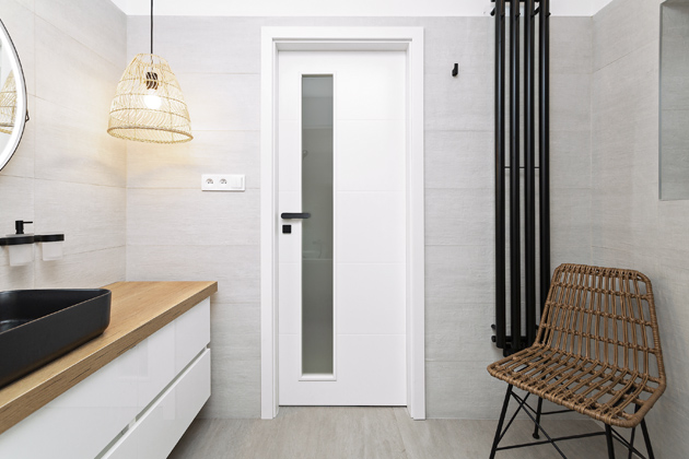 Bílé bezfalcové dveře EBC působí moderním, příjemně minimalistickým dojmem. Dveřní křídlo je do zárubně zapuštěno hlouběji, takže je s ní v zavřeném stavu v jedné rovině. Vůči ploše dveřního křídla vytváří zajímavý kontrast černé kování v matné povrchové úpravě, která působí v kompletu velmi atraktivně. Dveře EBC jsou důkazem toho, že bílá nemusí být nudná. Navíc překvapí kvalitou, kterou byste u laku možná nečekali.