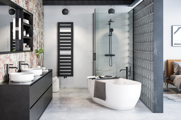 „Černé radiátory jsou už několik let v řadě hitem koupelen,“ potvrzuje Ing. Váša zjevný trend. Je to dáno kontrastem k populárním přírodním materiálům i nekonfliktností vůči široké škále barev v interiéru. Černá je výrazná, efektní a čistá, podtrhuje eleganci. Symbolizuje autoritu a moc, ale je také symbolem tajemna, temnoty, strachu nebo smutku. Proto není radno ji v interiéru nadužívat. Může pak působit dusivě nebo těžce, vyvolávat pocit úzkosti nebo chmurnou náladu. Ve vhodné kombinaci v interiéru ale budí respekt, působí elegantně, sebevědomě a inteligentně. Černá je zkrátka věčná kráska.