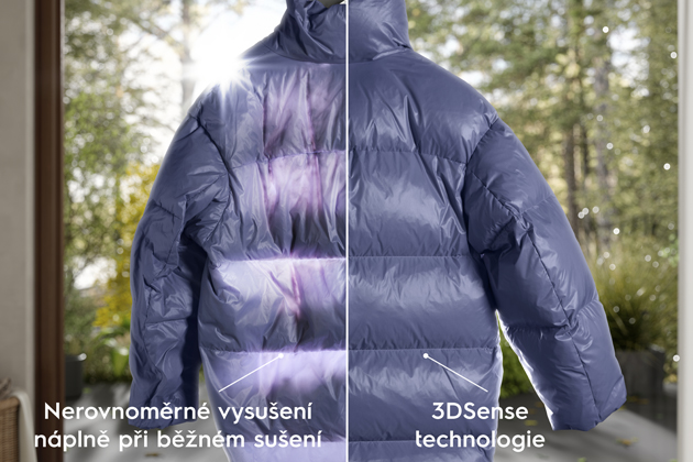 Technologie 3DSense přináší dokonalý výsledek i u peřin, polštářů nebo oděvů ze silné vícevrstvé látky. Péřové bundy mohou díky přesnému a úplnému vysušení zůstat nadýchané a s perfektně zachovanou tepelnou izolací.