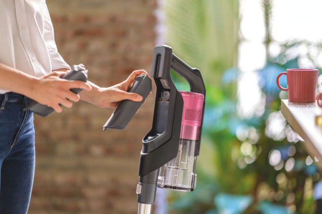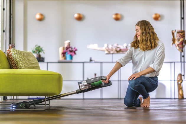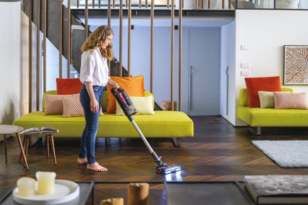 Nový vysavač HF9 lze zaparkovat ve svislé poloze bez nutnosti připevnit jej ke stěně, takže jej uložíte opravdu kamkoliv – do komory, do rohu v kuchyni, aby byl stále po ruce.