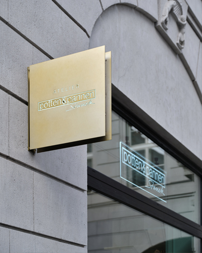 Prodejna s naprosto ojedinělým konceptem na první pohled upoutá svým uměleckým zpracováním: „Dominantou Atelieru Potten & Pannen – Staněk je patnáctimetrový masivní mosazný stůl – symbolizující bohaté hodování z toho nejdokonalejšího nádobí, které si dokážeme představit. Tímto na míru vyrobeným artefaktem prostupují dlouhé měděné tyče, jež mají evokovat linoucí se vůni, která se vždy pojí se skvělým jídlem a která vzniká kde jinde než v kuchyni. Ta se pomyslně nachází o patro níže a jejím výrazným prvkem je umělecká skulptura tvořená nádobím michelinských kuchařů značky Mauviel. To je zavěšeno u stropu ve vlnách a působí tak, jako kdyby celý prostor tančil,“ doplňuje svého dlouholetého obchodního společníka druhý z majitelů Potten & Pannen – Staněk, Miloš Staněk a dodává:
