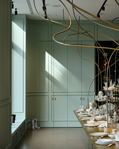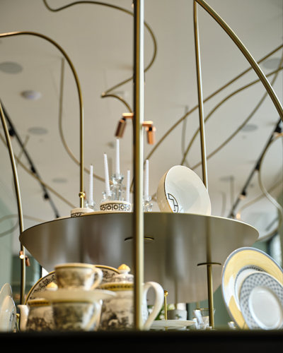 Ryze česká značka spojila síly s věhlasnými lokálními designéry a návrháři. Kromě děl mezinárodně uznávaného umělce Maxima Velčovského, který se zároveň stal kurátorem výběru českého designu, se zde nachází rozsáhlá prezentace skla a uměleckých artefaktů značky Lasvit, dále vázy, jídelní sety nebo lahve galerie Křehký, ručně vyráběné a malované hračky vycházející z tradičního řemesla od Václava Špály, designéra Ladislava Sutnara či malíře Jožky Baruchy. Zaujme i kubistická tvorba Pavla Janáka nebo skleněná díla od světového architekta Jana Kaplického. Opomenuti nemohou být ani aktuální vítězové prestižního ocenění Czech Grand Design 2022 Terezie Lexová a Štěpán Smetana, kteří ztvárnili již zmiňovanou uměleckou skulpturu ve spodním patře prodejny, originálně zpracovaný nápis Atelier a také venkovní výlohy.