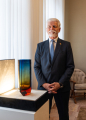 Během prohlídky se pan prezident osobně setkal s mistrem sklářem Zdeňkem Drobným a mistrem