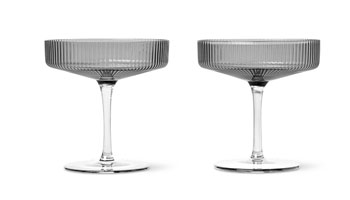 Foto: Ferm LivingRipple (Ferm Living), sklenice na šampaňské z kouřového skla, cena 969 Kč / 2 ks → www.salted.cz