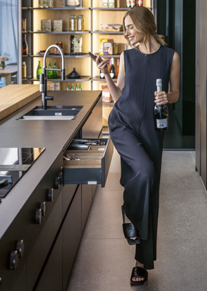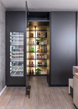 Skrytá spižírna je více než jen úložný prostor. Je to místo, které umožňuje, aby kuchyň nepůsobila přeplněným dojmem, byla vždy upravená, ale i připravená na vaření.