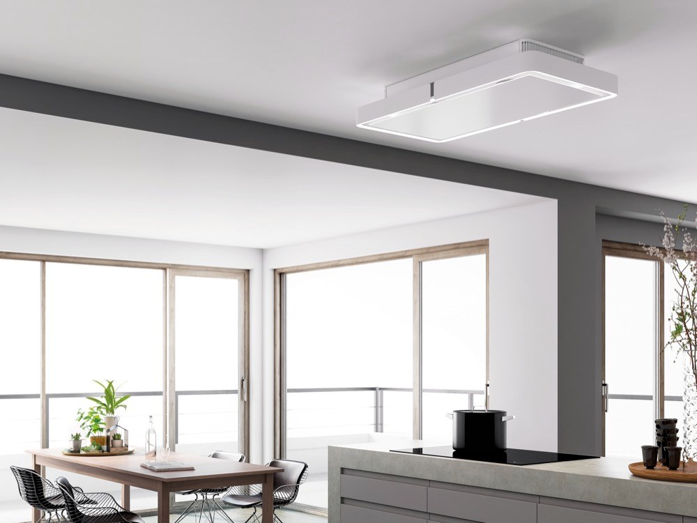 Sofistikovaná vnitřní stěna odsavače Novy Cloud optimalizuje proudění vzduchu díky svému plynulému tvaru, a tím dosahuje maximální možné detekce kuchyňských výparů.