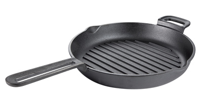 Litinová pánev (Orion), průměr 30 cm, zobáček na odlévání šťávy, cena 699 Kč → www.oriondomacipotreby.cz