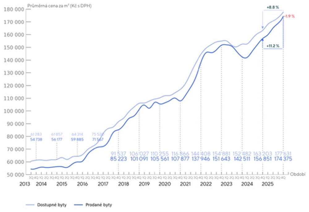 Vzhledem k přetrvávajícím problémům spojeným s novým stavebním zákonem a související digitalizací nelze ani v roce 2026 očekávat výraznější pozitivní obrat tohoto trendu. Dlouhodobá nerovnováha mezi velmi silnou poptávkou a nedostatečnou nabídkou tak bude i nadále vytvářet tlak na růst cen.