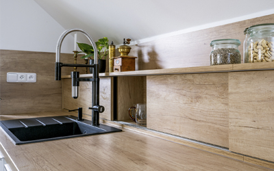 Při navrhování mycího centra se vyplatí přemýšlet o procesech odehrávajících se u dřezu v širším kontextu. Podle něho můžete vybírat ze dřezů s bohatým příslušenstvím a uvažovat o navazujícím úložném prostoru. Variabilní dřezy umožňující využívat vlastní plochu ke krájení, odkládání surovin a servírování jsou skvělou volbou pro malé kuchyně.