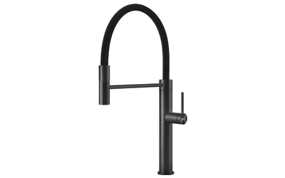 Foto: SmegStojánková baterie (Smeg), materiál nerezavějící ocel s povrchovou úpravou PVD Dark Inox, flexibilní sprcha, cena 28 990 Kč → www.smeg.com