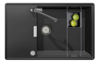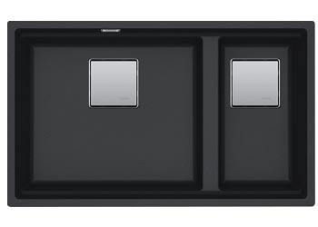 Foto: FrnakeKNG 120/2 (Franke), dřez „jeden a půl“ z materiálu Fragranit, s nerezovými krytkami ventilů, cena 13 310 Kč → www.franke.com