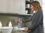 Foto: HettichSlideLine (Hettich), posuvný systém s úložným prostorem tvářící se jako obklad kuchyňské linky je praktické řešení pro uschování saponátů, houbiček a dalších věcí, které nechcete mít na očích