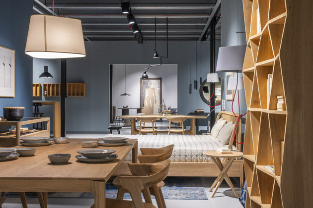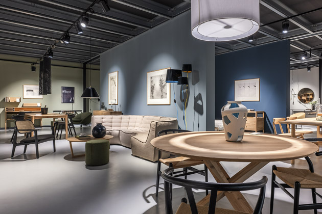 Do Letňan se toho vejde! Budova, kterou najdete v areálu Logistic Parks, sice nemá takový styl a kouzlo jako Rustonka, nicméně může nabídnout jiné věci. Jednou z nich je ohromný prostor, který je tu k dispozici a dovoluje ukázat co největší množství produktů a jejich variant. Rozlehlou expozici tu díky tomu získala například renomovaná belgická značka Ethnicraft, známá autentickým nábytkem z přírodních materiálů s etnickým přesahem.