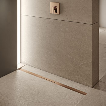 Foto: TeceTECEdrainprofile (TECE), sprchový odtokový žlábek z nerezu s PVD povrchem v růžově zlatavém kartáčovaném provedení, cena na dotaz → www.tece.cz