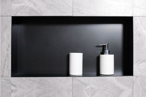 Foto: BernsteinVestavěná nika (Bernstein), materiál ocel v černém provedení, rozměry 60 × 30 × 8,5 cm, cena 3 298 Kč → www.bernstein-badshop.com/cz
