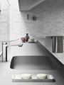 Lineare (Grohe), vysoká štíhlá baterie s povrchovou úpravou SuperSteel, technologie Grohe EcoJoy s průtokem vody 5,7 litru za sekundu, cena 15 350 Kč → www.grohe.cz