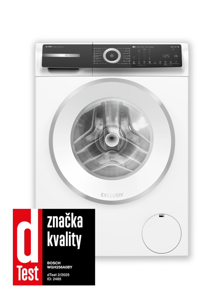 V únorovém vydání časopisu dTest bylo oceněno několik modelů praček značky Bosch. Značku kvality získal například model Bosch WGH256A0BY, který je zařazený do nejlepší energetické třídy A a pomáhá šetřit vodu i prací prostředky díky funkci automatického dávkování i-DOS. Funkce Iron Assist redukuje pomačkání suchého prádla až o 50 %, díky možnosti přidané páry na konci pracího cyklu nemusíte trávit tolik času žehlením. Technologie Home Connect umožňuje připojit spotřebič do chytré domácnosti, kontrolovat a ovládat ho odkudkoli nebo ho propojit s dalšími zařízeními. Pokud máte alternativní zdroje energie, může se například pračka sama spouštět ve chvíli, kdy je to nejvýhodnější. Podívejte se i na další pračky Bosch, které mají Značku kvality dTest: WAN28270BY , WGG244Z2CS, WGG244Z5CS, WGG244Z5BY nebo WGG244Z2BY.