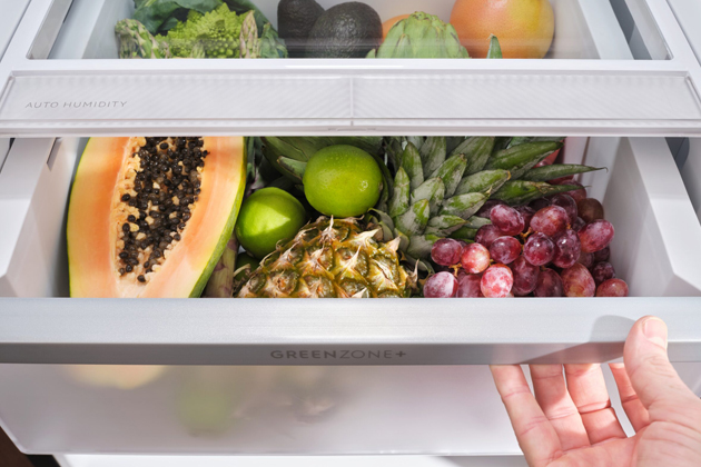Součástí nejnovější chladničky 900 MultiChill 0° je i zásuvka GreenZone+, která udržuje optimální vlhkost pro skladování ovoce a zeleniny. Brání tak zbytečnému vysychání potravin a ztrátě důležitých vitamínů. Kromě toho chladnička disponuje konvertibilní mrazničkou a elegantním designem, takže se stane praktickým a stylovým doplňkem každé kuchyně.